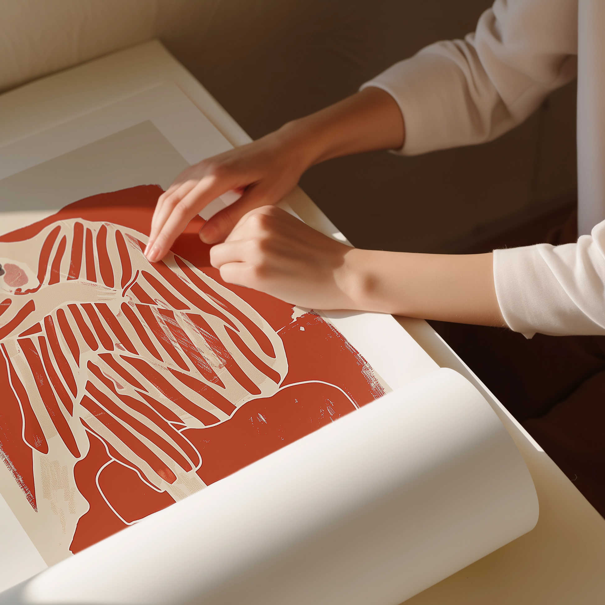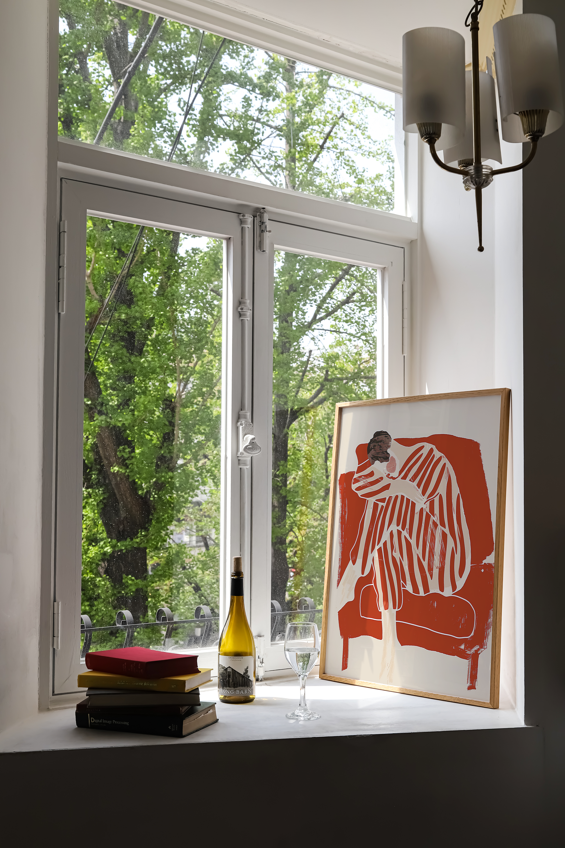 Discover the serene beauty and simplicity of our Scandinavian Design Inspired Art Print. Perfect for lovers of modern, minimalist aesthetics, this print features an abstract human figure in a contemplative pose, seated on a stylized red chair. Inspired by the tranquil and clean lines of Nordic design, this art print brings a touch of Scandinavian elegance and contemplation to your home.