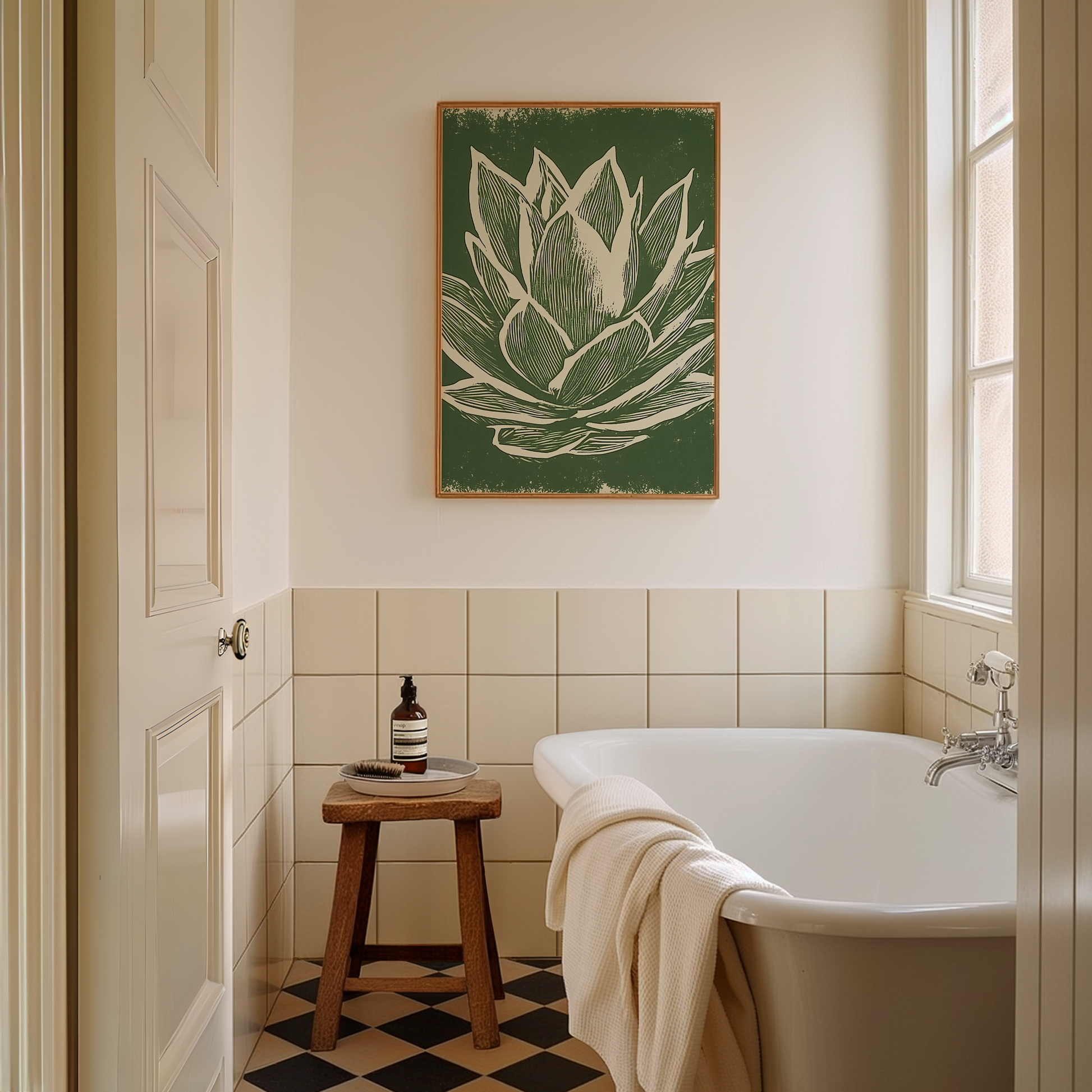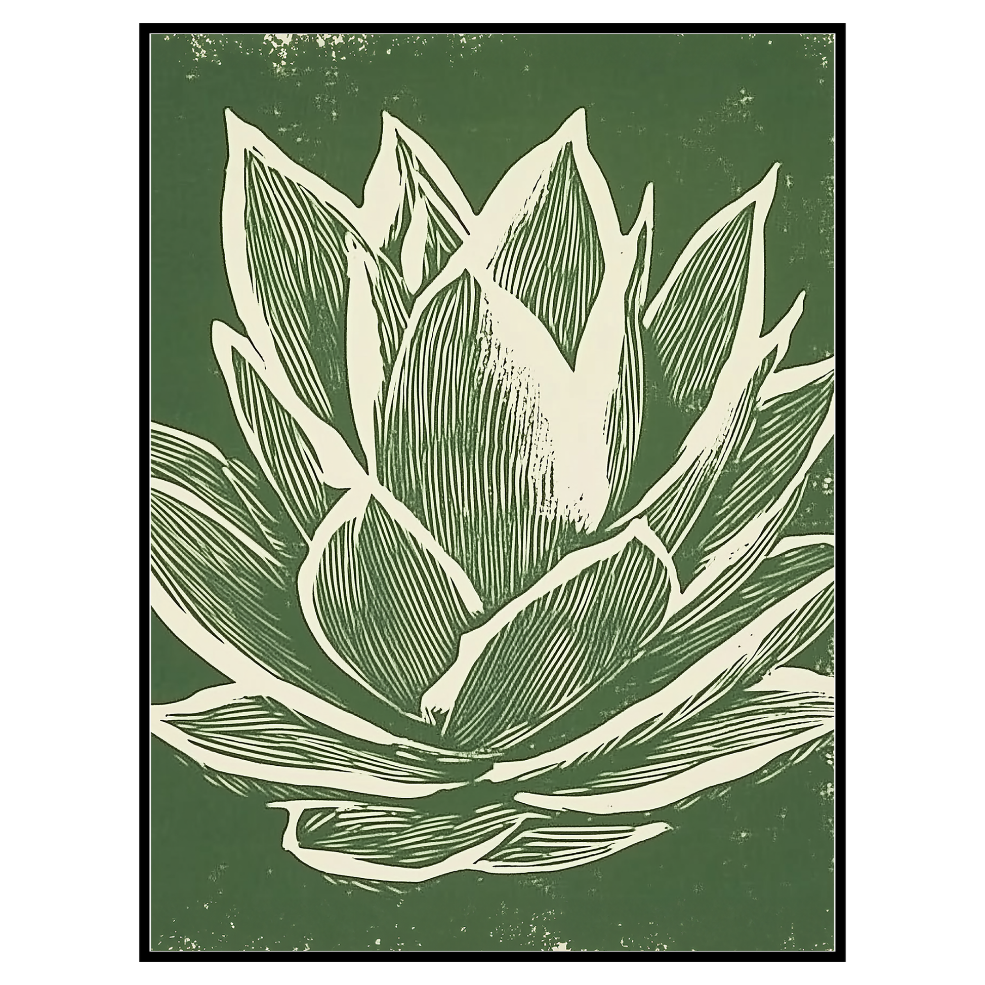 Transform your space with this striking "Agave Plant Linocut Print," a perfect blend of modern minimalism and desert-inspired charm. This print features a bold green and cream agave plant, ideal for Southwestern-themed interiors, botanical art collections, or eco-friendly decor. The handcrafted linocut style adds artisanal texture, making it a stunning focal point for living rooms, offices, or kitchens.