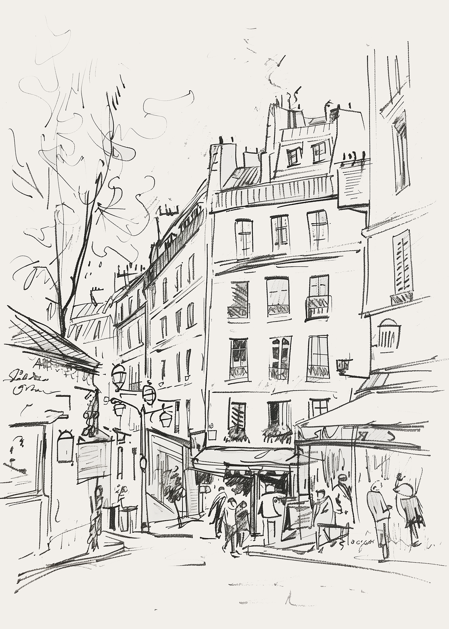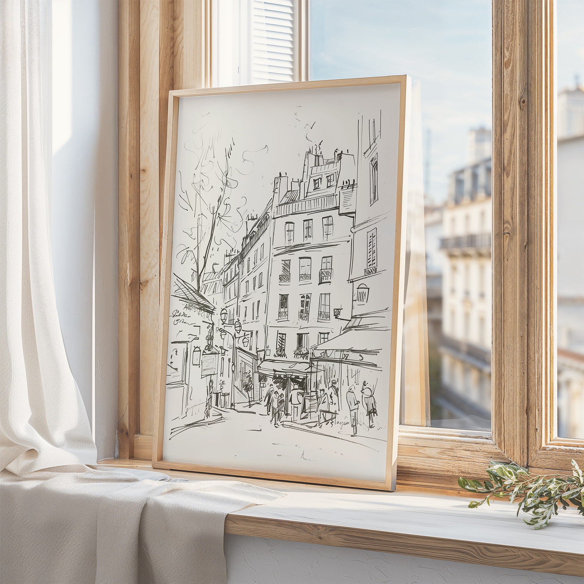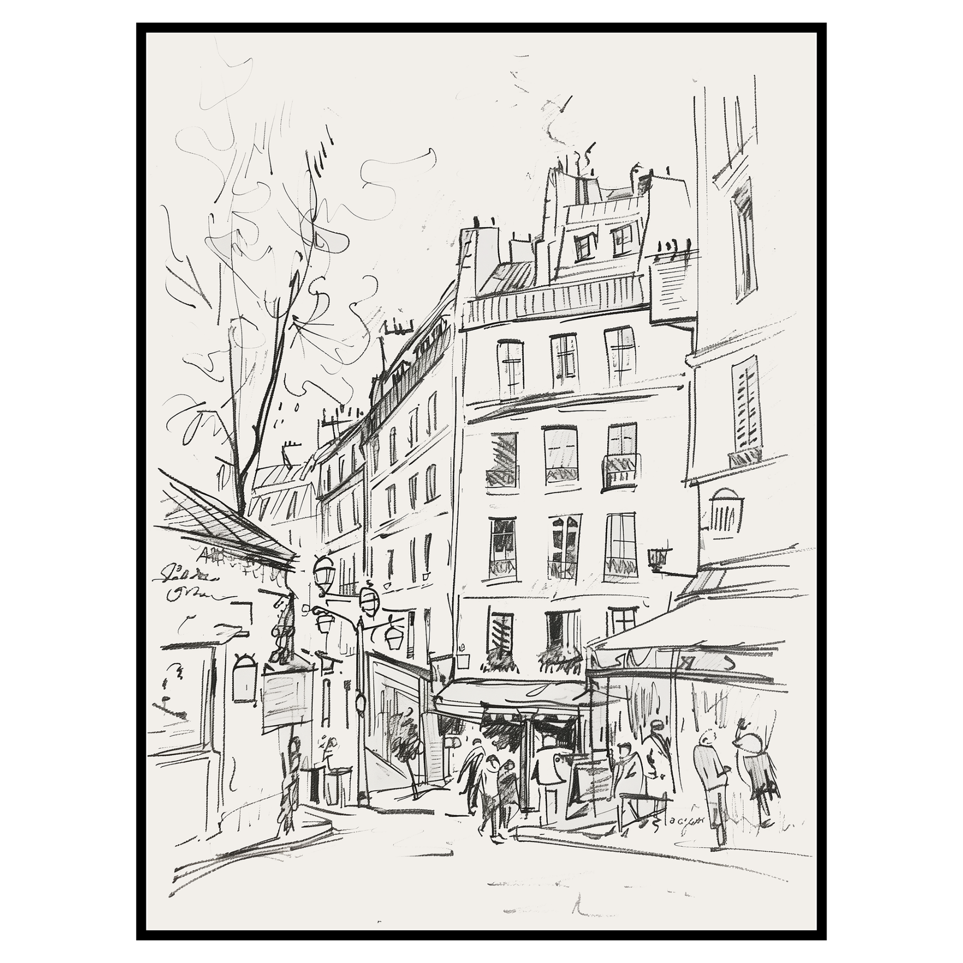 Charming Paris Street Scene Sketch - Minimalist Urban Decor