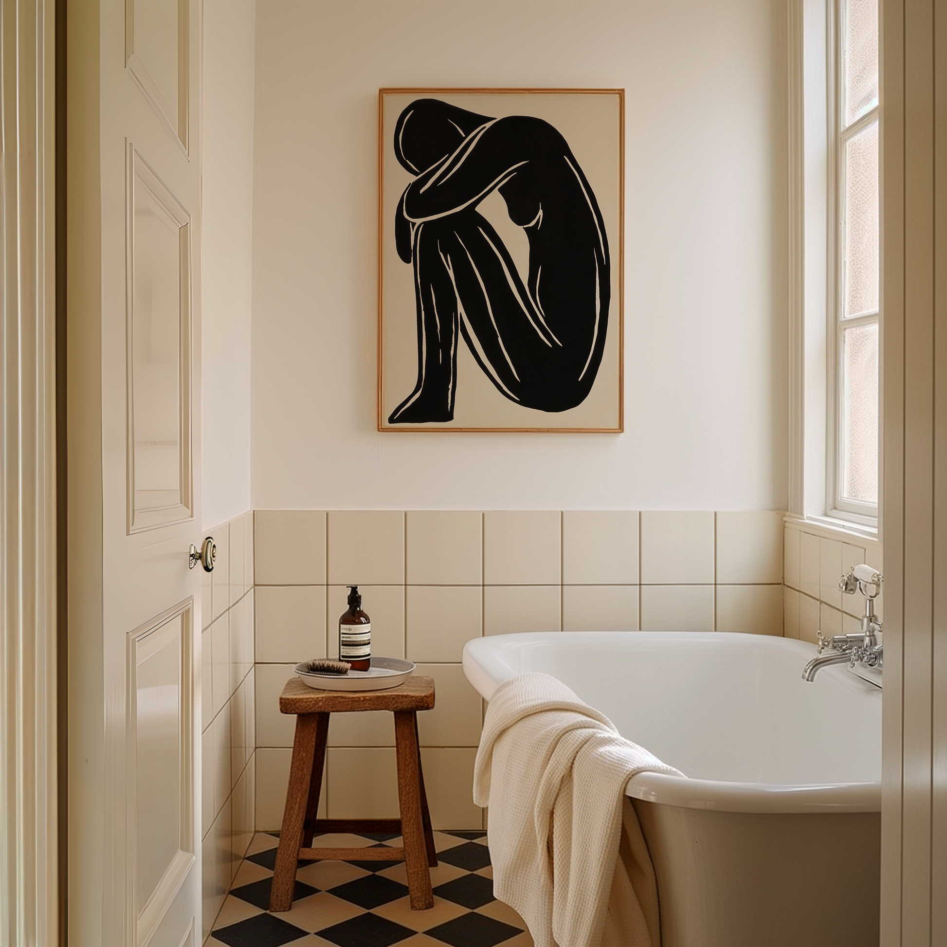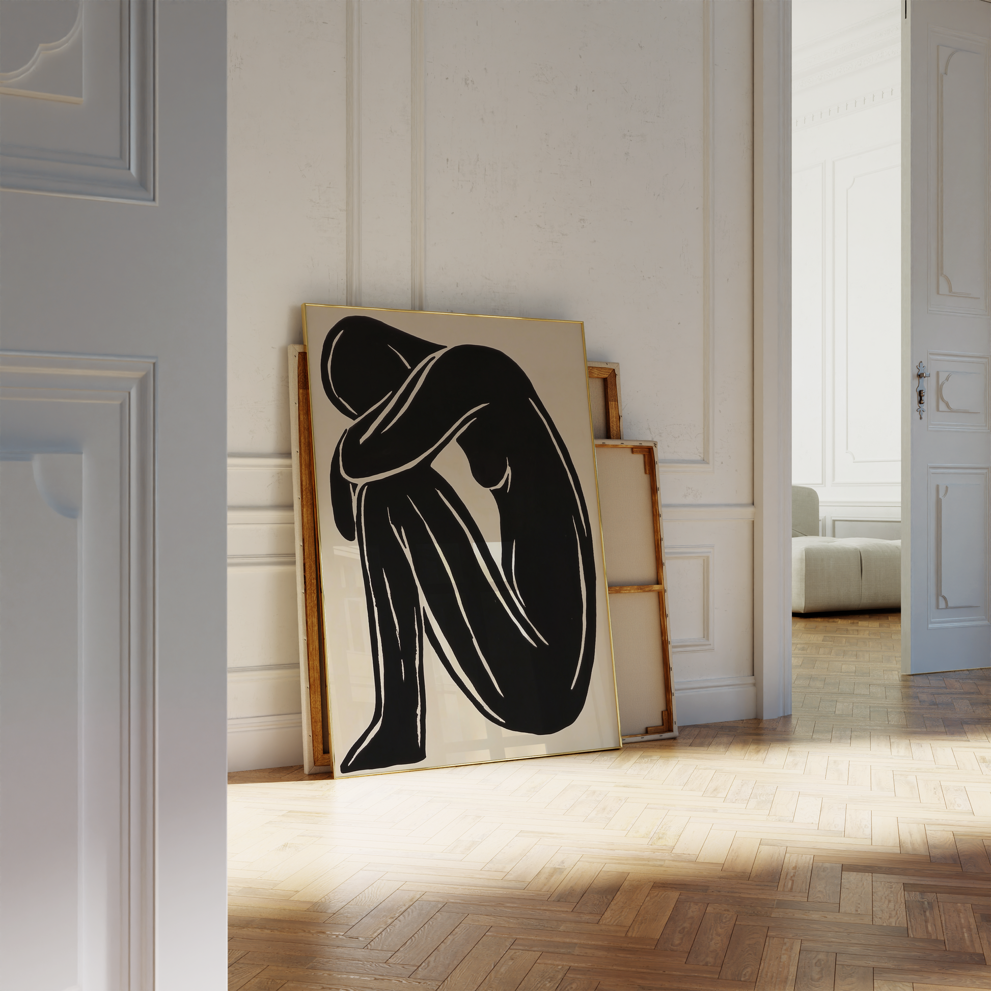 Elevate your space with this striking minimalist abstract female figure art print. Featuring bold black and white lines, this print