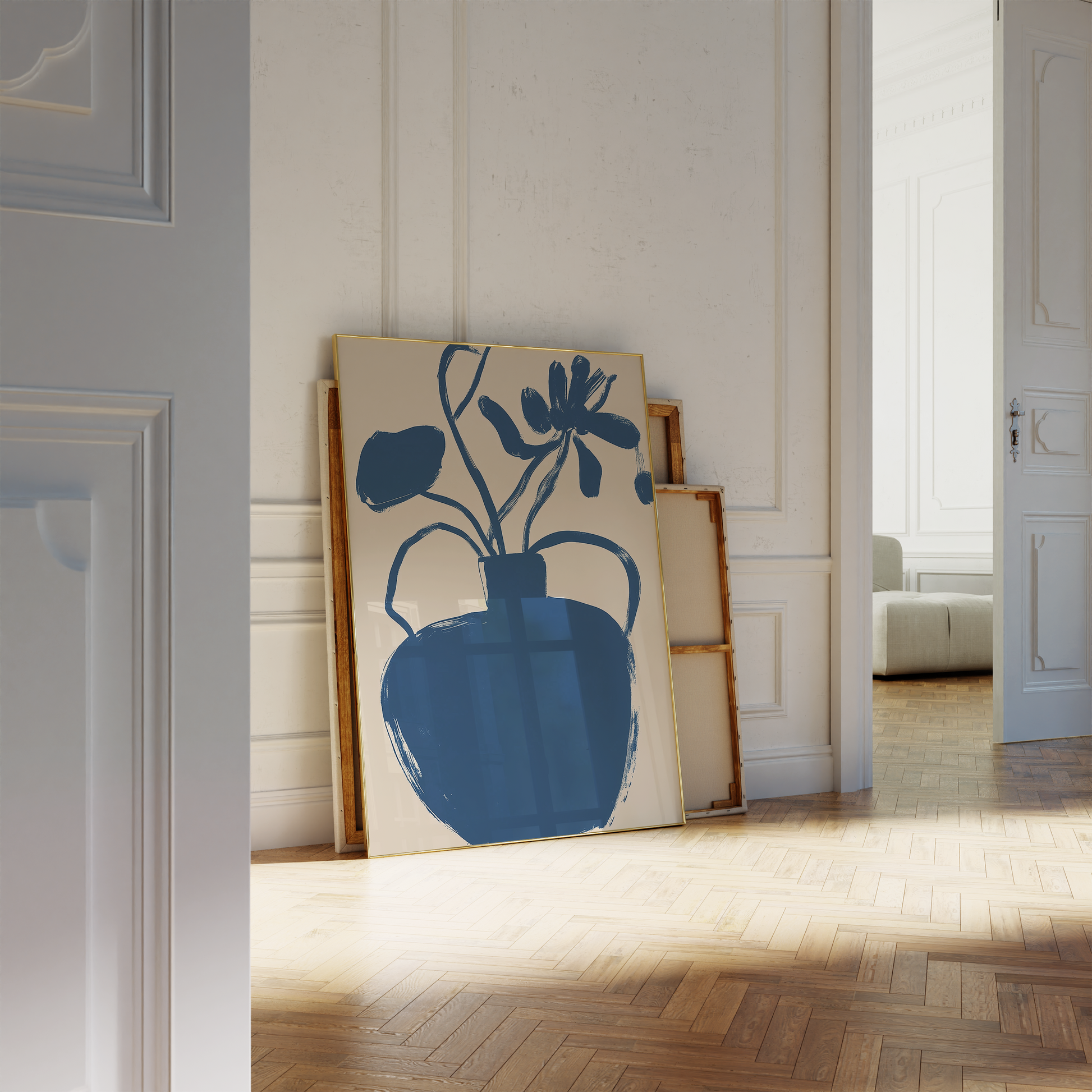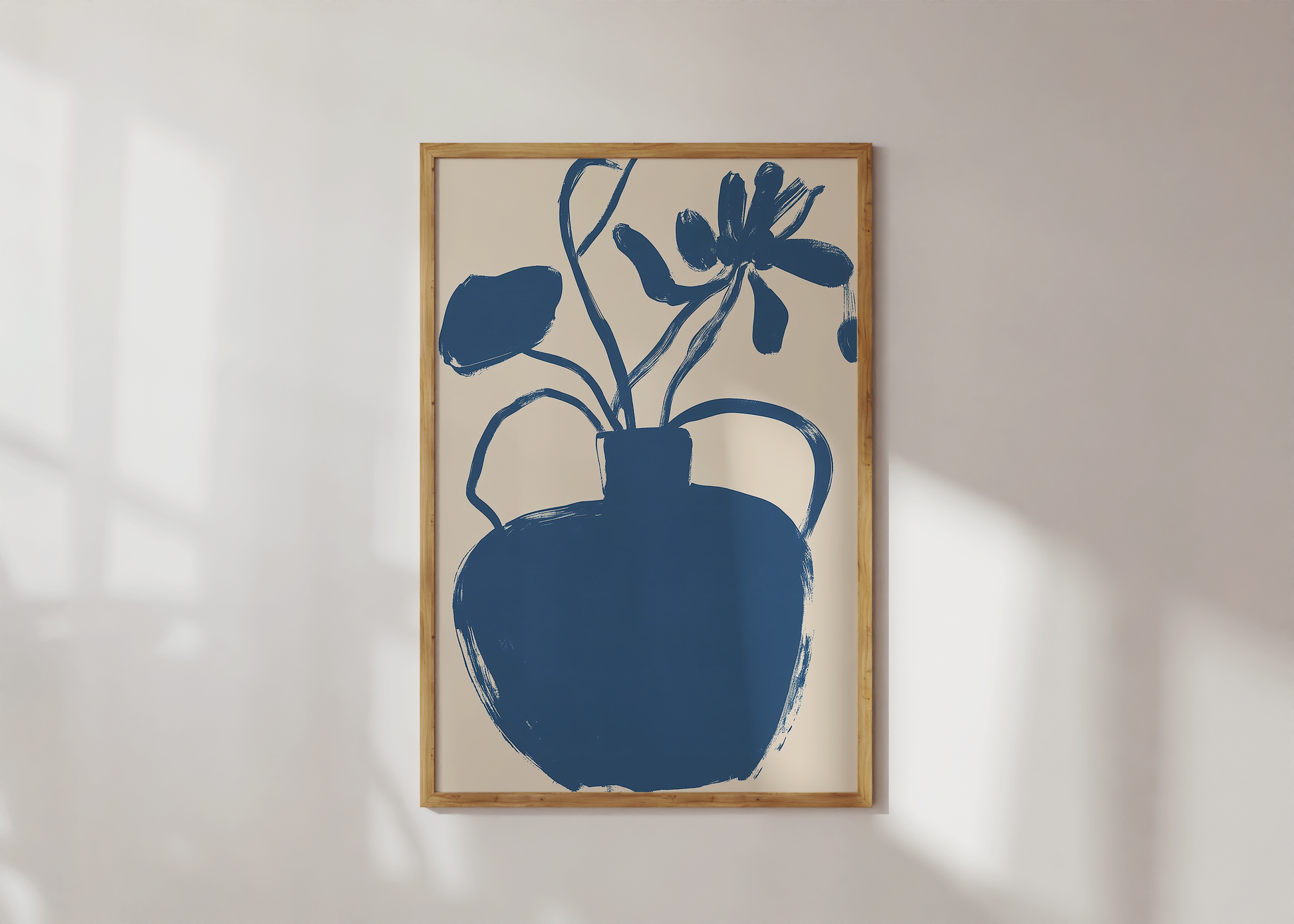 Elevate your home decor with this elegant Minimalist Blue Vase Art Print. Featuring a bold, hand-painted blue botanical vase on a neutral background, this artwork seamlessly blends abstract and modern styles. Perfect for creating a Scandinavian-inspired space, this print is a versatile addition to living rooms, bedrooms, or offices. Its clean, timeless design complements a variety of interiors, from minimalist to boho to contemporary.
